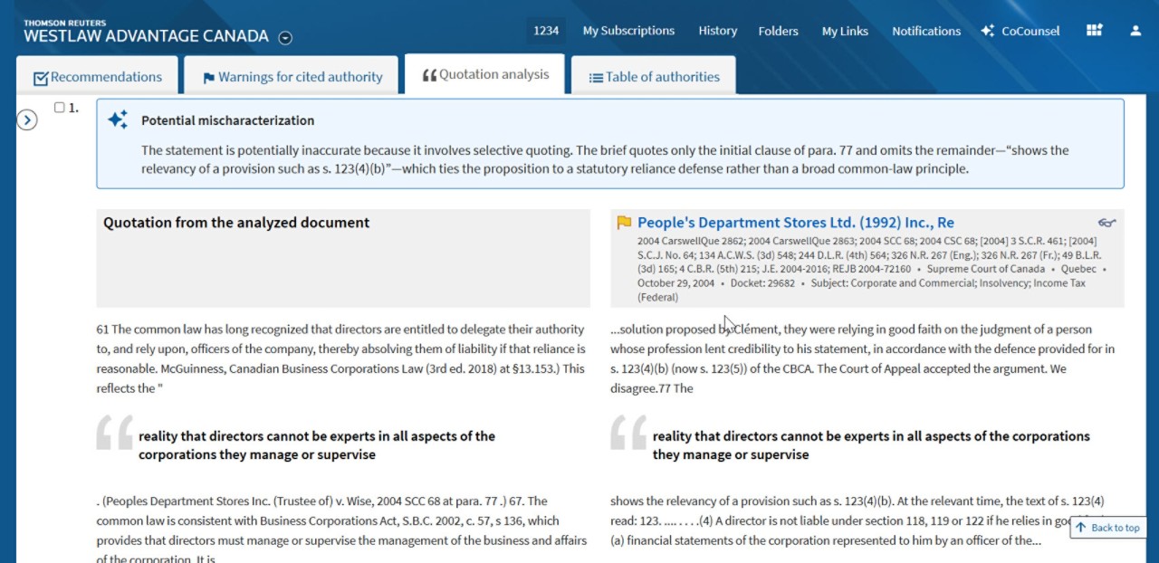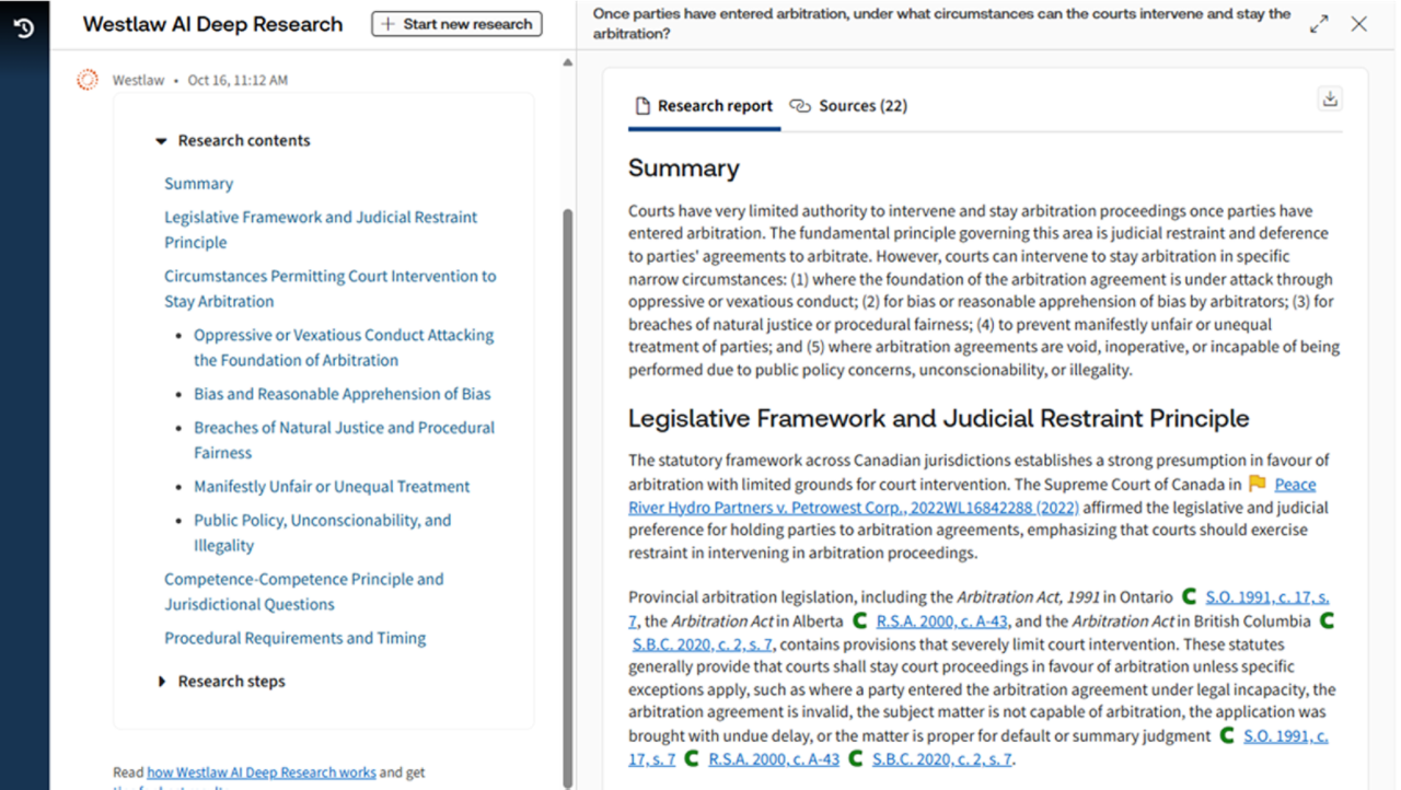 Rely on custom-trained AI powered by Westlaw's industry-leading Canadian legal content and tools for authoritative results.