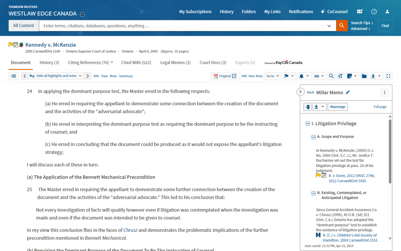 Leverage authoritative content and expert commentary combined with intuitive features to help you make well-informed decisions. Access the practical tools of Westlaw Edge Canada to streamline research and simplify complex tasks with a smooth, efficient workflow from start to finish.