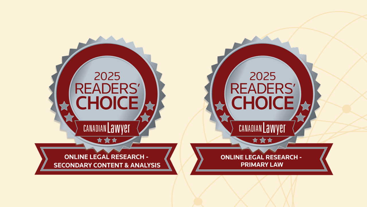 Westlaw Canada products contain an unparalleled library of award-winning legal content