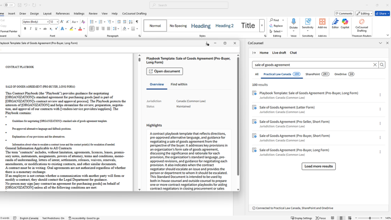 Access CoCounsel Drafting directly where you work — in Microsoft Word. This secure, end-to-end drafting solution combines professional-grade AI with trusted Practical Law content, helping legal professionals save time without sacrificing data privacy or accuracy. Less time spent on drafting means more time for strategic work.