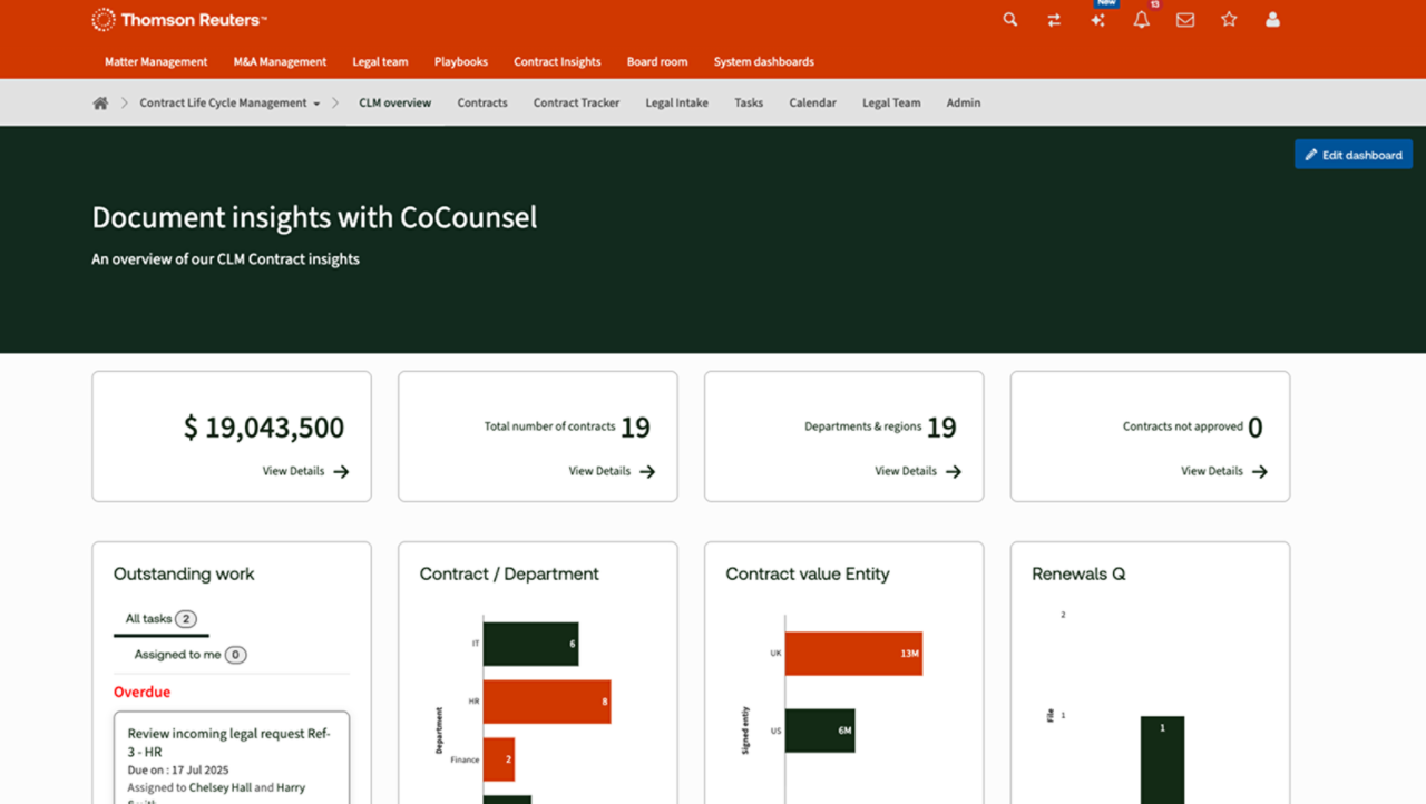 Meet rising client expectations by relying on HighQ's secure collaboration platform. Integrated with CoCounsel — a professional-grade AI assistant with advanced agentic workflows that guide you through complex legal work —, it helps you move faster and deliver exceptional client experiences with 24/7 access to legal matters, real-time document collaboration, and more.