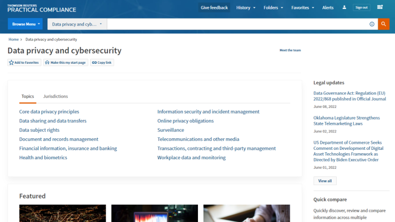 A powerful combination of compliance-related know-how plus data privacy and cybersecurity how-to guides, primary source regulatory information, news, and materials from governing and enforcement agencies.