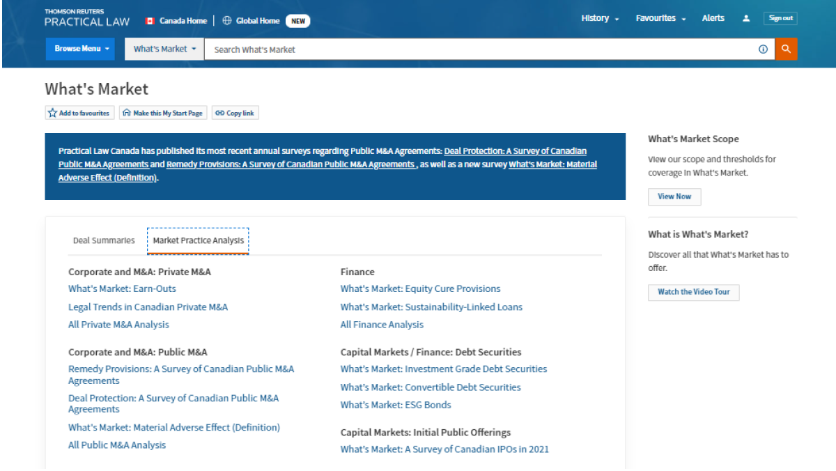Gain access to a database of summaries for publicly filed deals and accelerate your research process. Use What's Market to identify, review, analyze, and compare terms or features across multiple deals and link to underlying public documents.