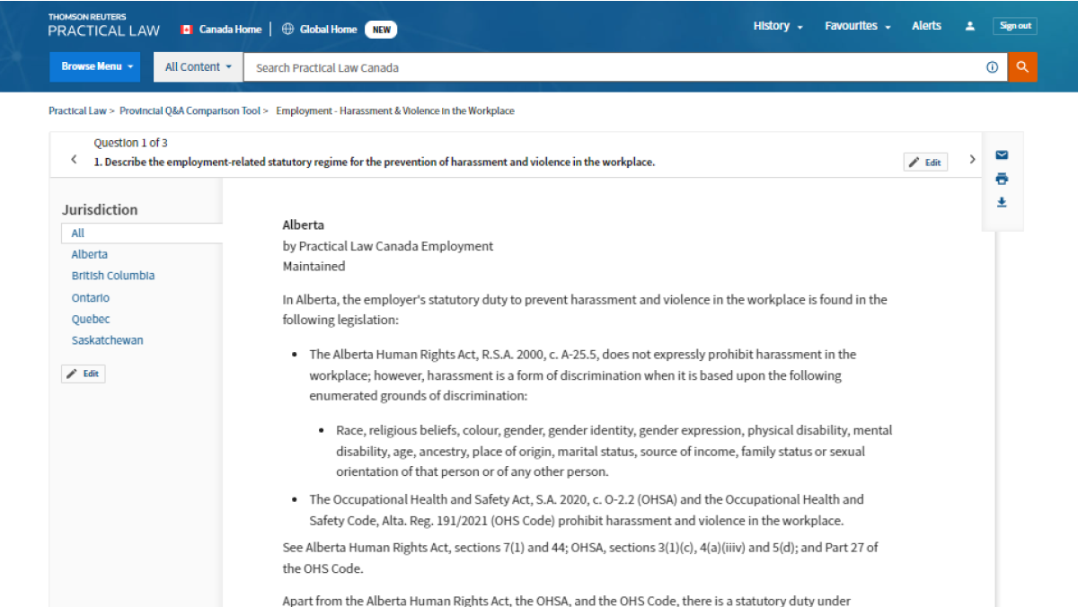 Save hours on research and quickly gain an understanding of complex legal issues using Provincial Q&A to review and compare laws across all Canadian jurisdictions instantly.