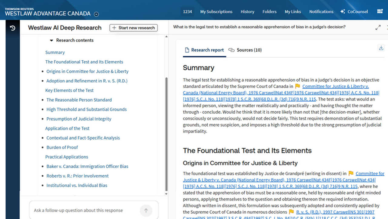 Westlaw Advantage Canada brings together industry-leading primary and secondary legal content, editorial enhancements, exclusive research tools, and advanced AI. This combination means you can trust that the AI draws only from verified, expertly maintained legal content repositories — giving you confidence in the results.