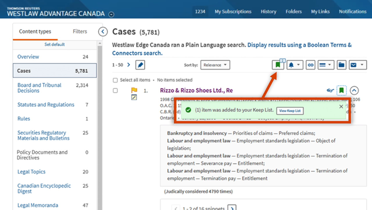 Keep your research streamlined and organized with Westlaw Advantage Canada