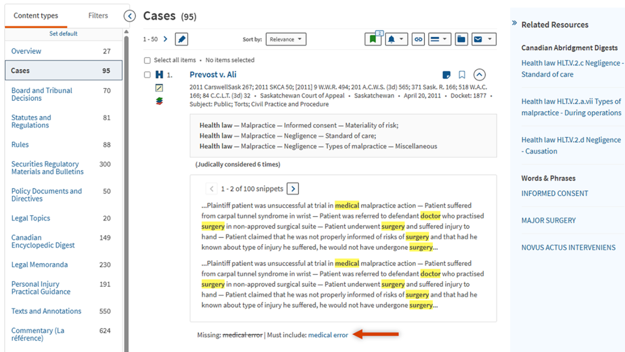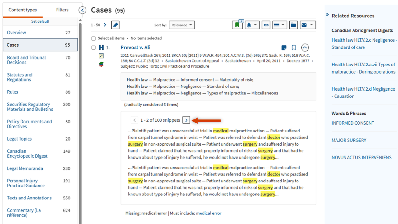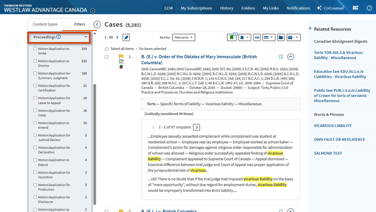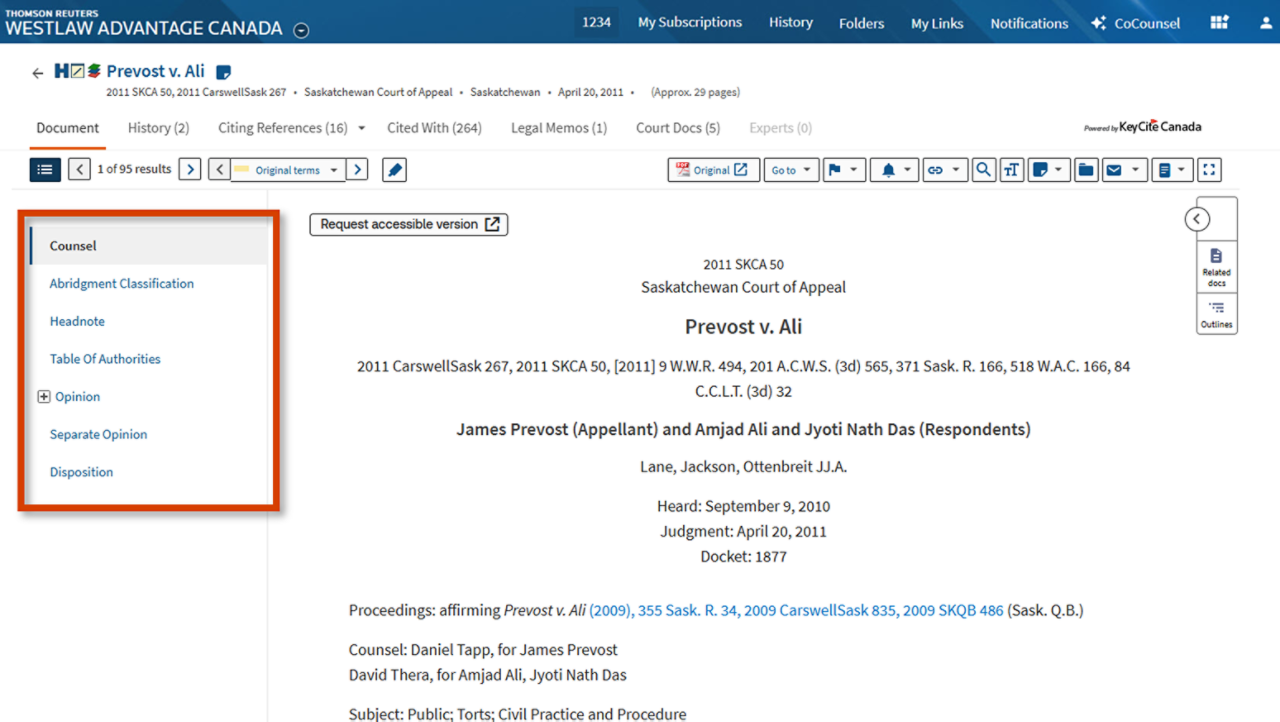 Skip the hassle of skimming long cases and jump straight to what matters with Table of Contents for Cases. Located on the left of every case and decision, this interactive table links all headings so you can instantly navigate to the section you need.