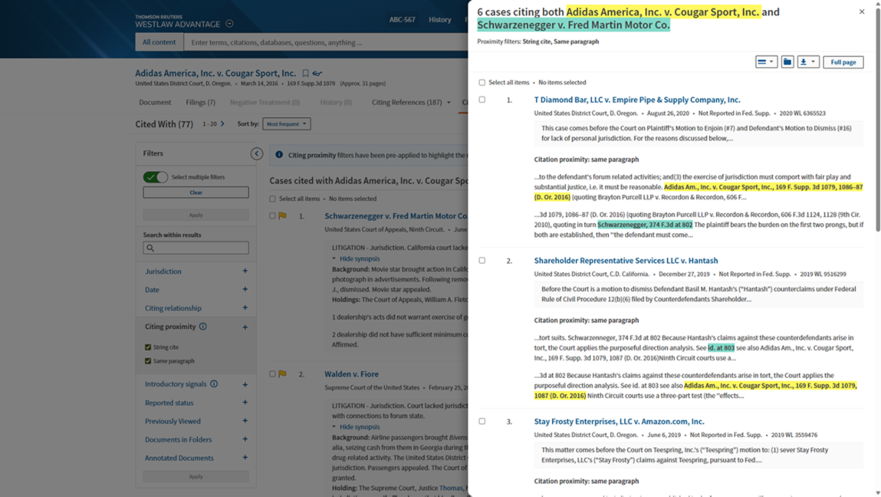 Discover connections between cases that are traditionally challenging to identify. Using KeyCite Cited With, swiftly pinpoint related cases that consistently appear together in citations, even if they do not directly reference each other.